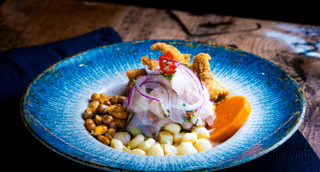 Ceviche, o prato mais famoso do país, feito com peixe fresco marinado em limão.